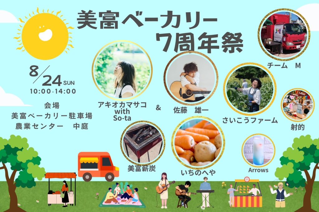 美富ベーカリー7周年祭を 8月24日(10:00~14:00)に開催いたします。