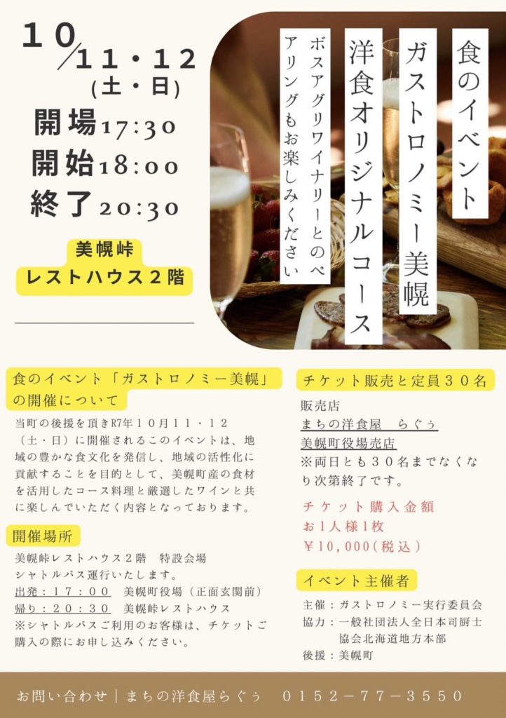 食のイベント『ガストロノミー美幌』が開催されます♪